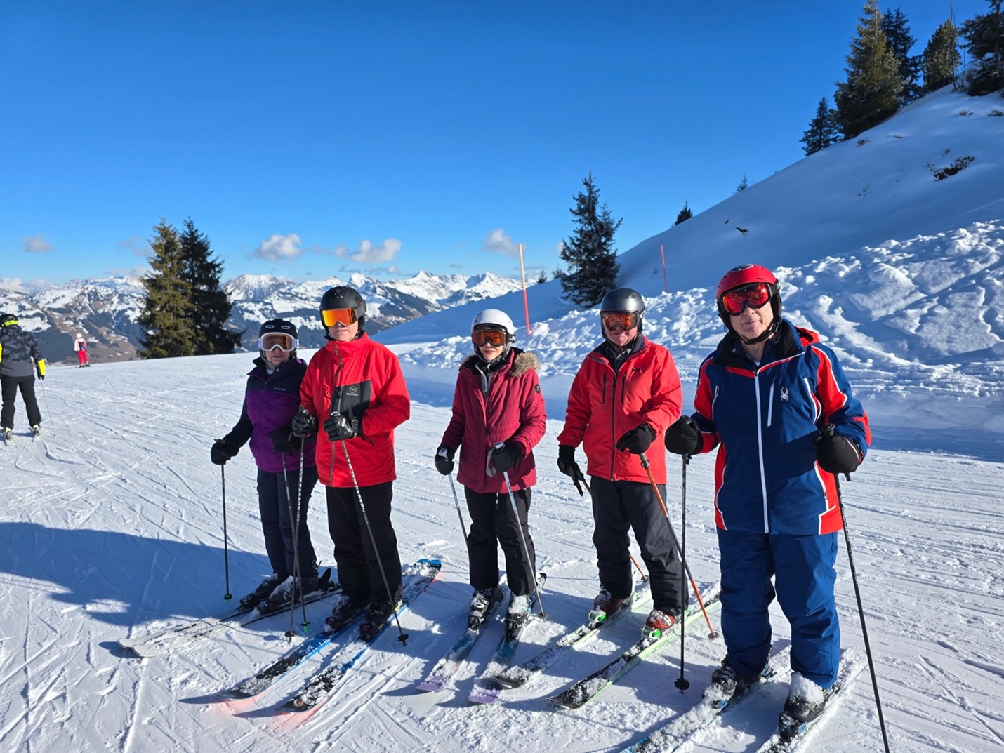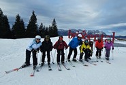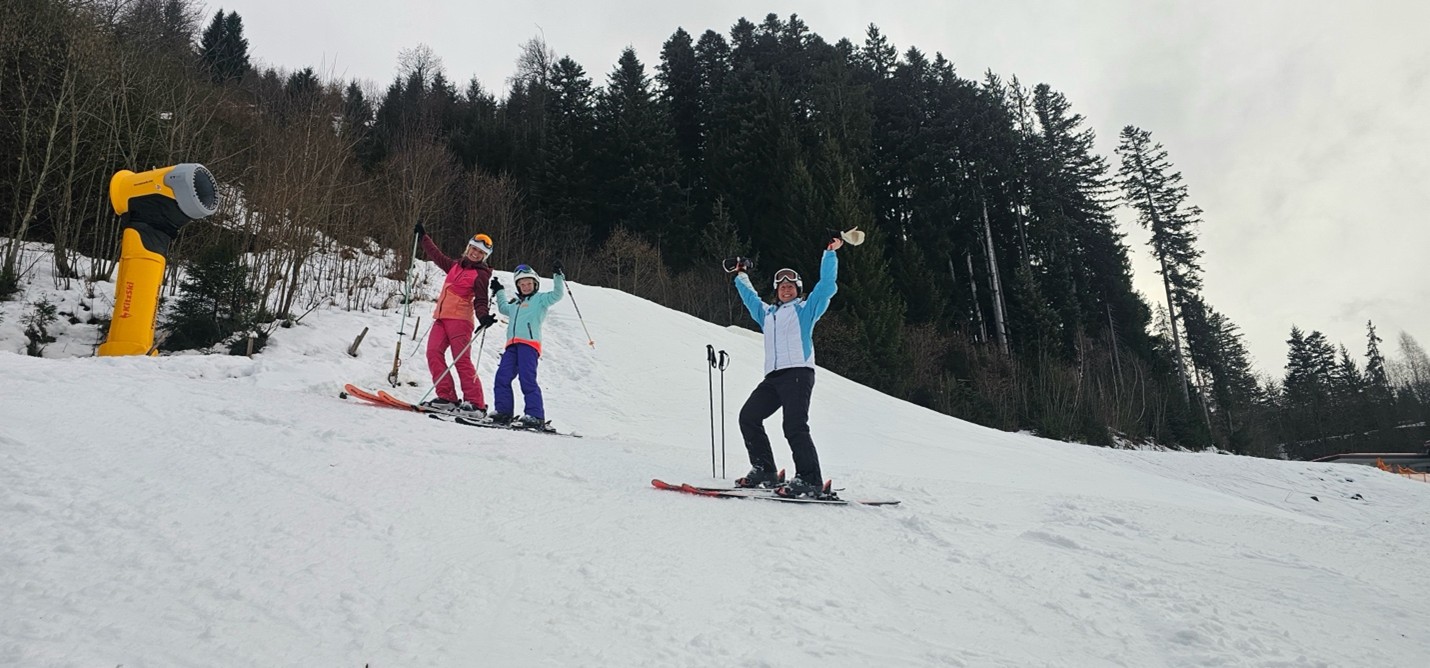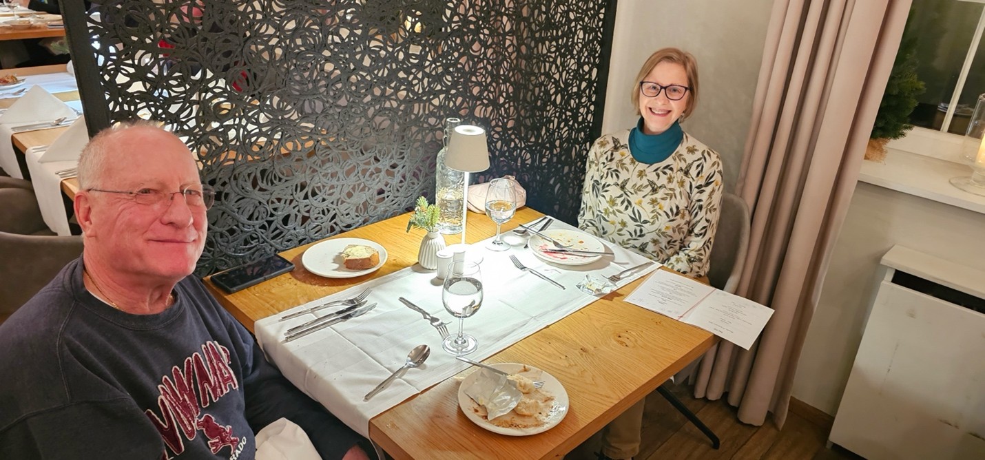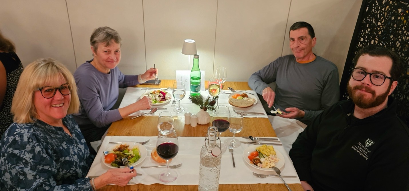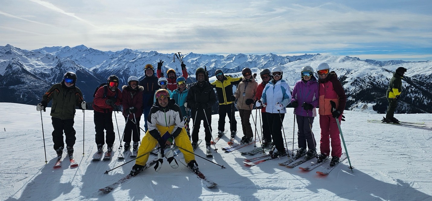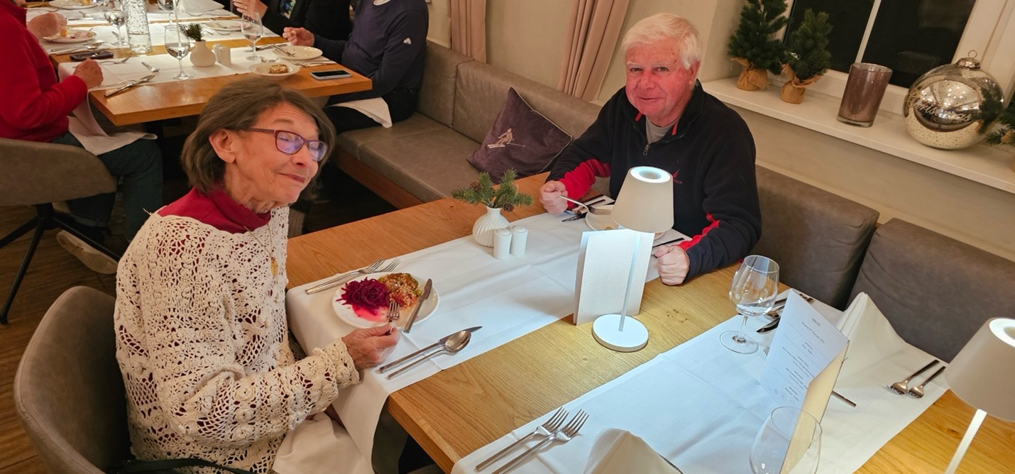 Dining and CommunityMeals were provided at the hotel, with breakfast buffets each morning and four-course dinners (including vegan options) accompanied by a salad buffet each evening. The Maria Theresa Hotel featured an elegant fireplace lounge and bar, creating a welcoming atmosphere. The staff, notably international, were attentive and accommodating, handling special requests with care. Shared spaces such as the lobby bar and lounge area allowed our group to gather, relax, and enjoy meals together fostering a sense of community that makes our club more than just a ski group.