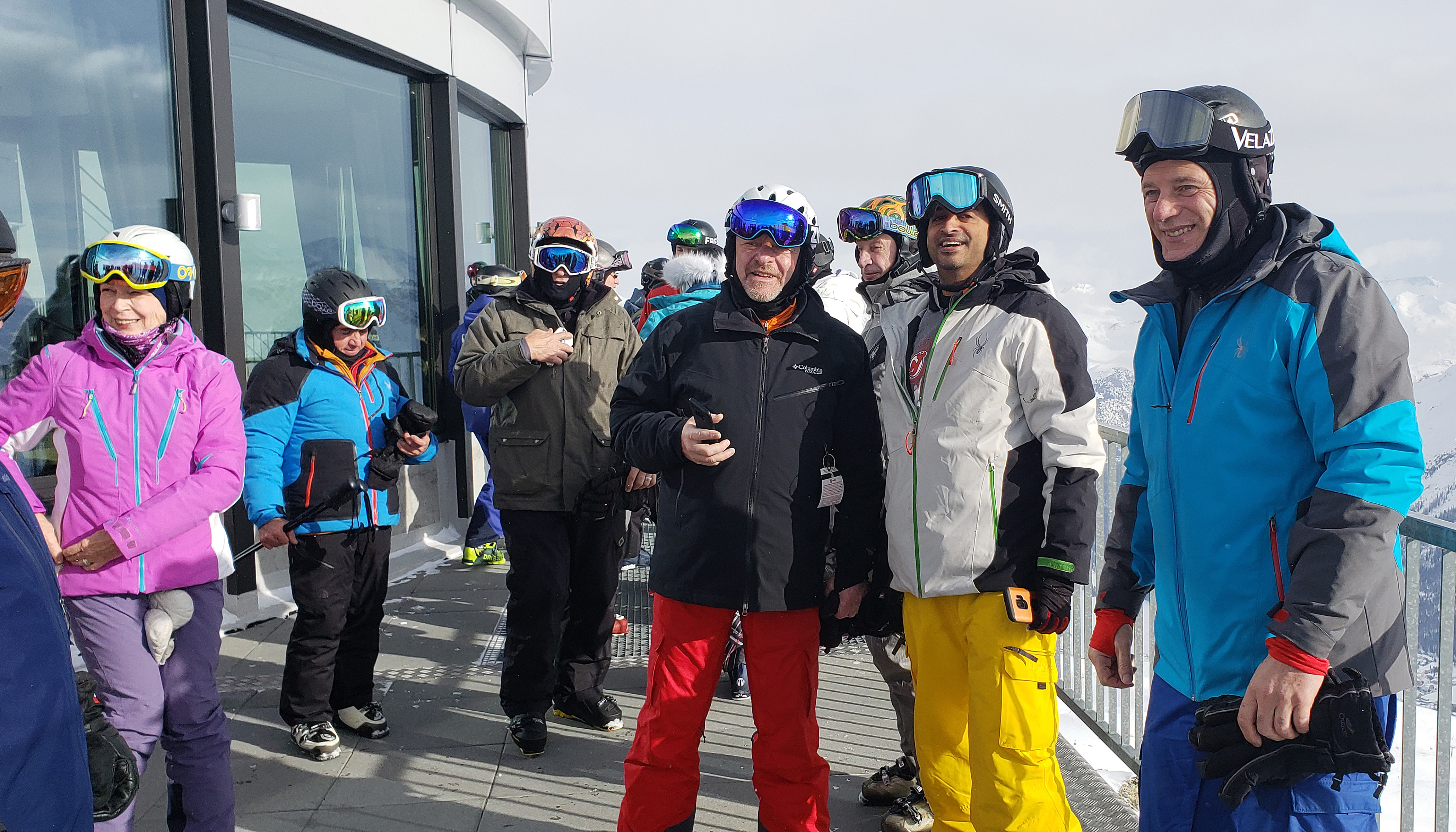 Jan 26-Feb 6, 2019 The group met at Newark airport for the Saturday overnight flight to Zurich. The airport was empty for our 10pm departure, so no lines at check-in, TSA, or the Irish bar across from our gate in Terminal B; a very civilized departure experience. When we arrived in Zurich at 11:30am Sunday morning, the 52 of us loaded our luggage and skis (skis fly for free on Swiss) onto two motor coaches for the 3.5 hour drive via windy switchback roads to the mountain village of St Moritz. When we arrived at Club Med, their "GO" team took our luggage and staged it on the appropriate floor for each of our rooms. Our skis and boot bags were placed outside by the basement ski room door. Unfortunately we weren't told of this segregation of our luggage and it took a while before most of us discovered that our ski stuff was outside, where it was snowing and wet. One couple's boot bag was "lost" in the kerfuffle (Club Med gave them free boot rentals and a lost luggage claim was filed). The ski room was an open area with ski racks where each room had a designated slot in a rack. There were shelves where you could store your boots. If you wanted to secure your skis or boots, you needed to bring a cable lock. Upon entering Club Med we were greeted with drinks and our room packet (keys, ski lift card, CM charge card). Within a few minutes we were all in our rooms and then we went to the bar lobby to enjoy a drink and sign up for lessons by group difficulty number. There was a video that showed what type of skier skill level is appropriate for each level. 1=never-ever; 2=wedge; 3=parallel-slow; 4=parallel-moderate-speed; 5=aggressive-plus-off-piste; 6=cliffs-and-rocks. Since about 70% of the group had been to Club Med
