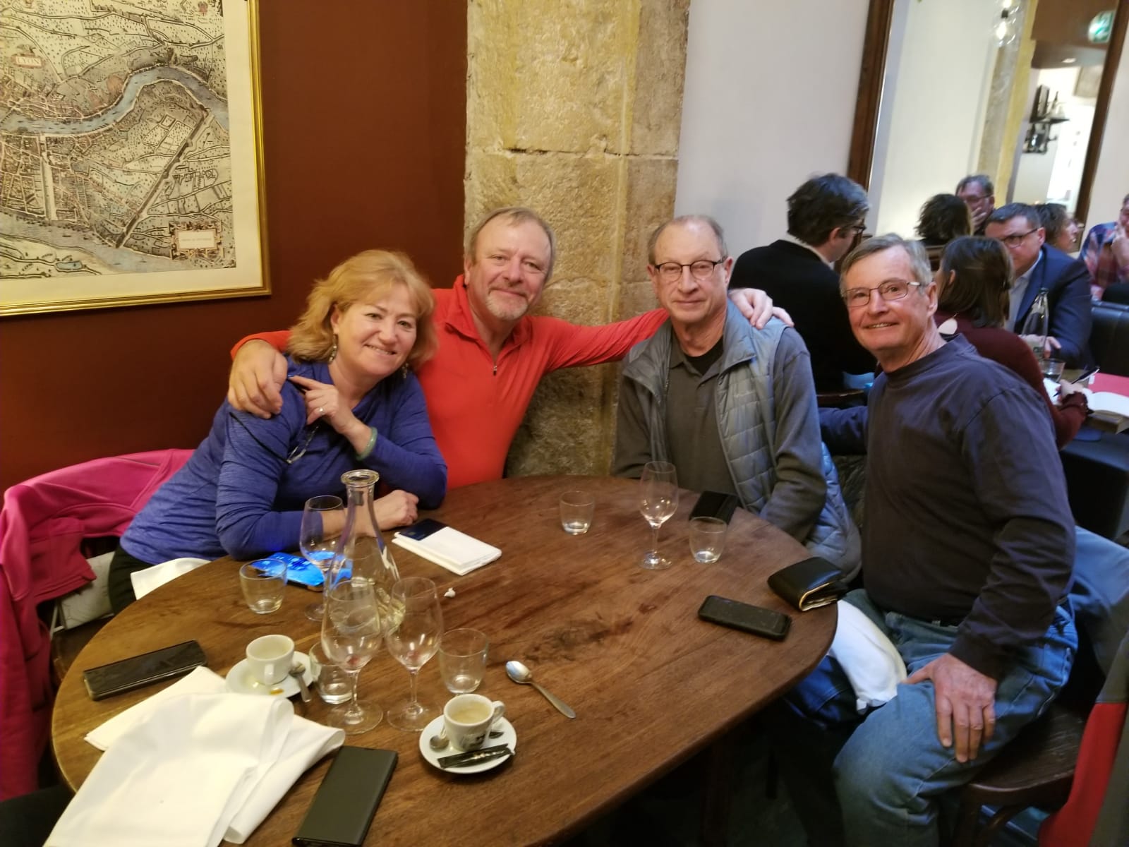 Jan 18-28, 2020 Our Club had 37 people on the trip, 33 flying with us on Swiss Air from Newark to Geneva (connecting in Zurich) and 4 meeting us in Geneva Airport. Swiss Air allowed 1 free ski bag per person, and most of the people took advantage of the offer. The group met at Newark airport for the Saturday flight around 7pm. Our plane left Newark airport on time. We had no issues with the connecting flight in Zurich. We arrived in Geneva at 2:15 PM (on time), meeting 4 people at airport. We then loaded the bus for our 3-hour drive via windy switchback roads to the mountain village of Val Thorens. When we arrived at Club Med, their "GO" team took our luggage and staged it on the appropriate floor for each of our rooms. Our skis and boot bags were placed near ski room individual doors. Within a few minutes we were all in our rooms and then we went to the bar lobby to enjoy a drink and sign up for lessons by group difficulty number. There was a video/presentation that showed what type of skier skill level is appropriate for each level. 1=never-ever; 2A=parallel-fast; 2B=parallel-moderate; 3A= moderate-speed-plus-off-piste; 3B= moderate-speed; 4=aggressive-plus-off-piste. The Club Med Hotel was a very good choice. The rooms were large for Europe. All food and drinks were included, and the quality and variety of the buffet was very good. About 10 people rented skis, mostly at Caron Rentals (about $22 per day). The hotel had an official ski room with individual lockers, so people didn’t have to carry skis to the room. Monday morning began the 5-days of instructor led lessons. Each skier level had a similar meeting time and destination, which changed each day, based on instructor decision. Val Thorens Club Med resort is a true ski in, ski out resort. Several of the skier level groups consisted of all or mostly Holmdel Ski Club members. It was important to align with a particular social group on the first day since this was your group for the entire week. Some instructors gave frequent lesson tips/assessments, while others mostly guided us around the mountains. Once again, it was important to initially align with your preference of an instructor or a guide. The skiing at Val Thorens/Mirabel/Courchevel had variety of groomed and ungroomed runs. Off piste cover was mostly packed with some untouched area of powder. Weather presented some challenges with low clouds, some wind, cold temperature and flat light for couple of hours in a first 2 days. Free steam room was available and welcomed by some members. We had a great time together at meals since Club Med designated a specific dining area for our club. Many toasts and accompanied laughter filled each evening. For dinner, we had choice of using Main dining area with an excellent variety of food choices and drinks or we could have made a reservation at a smaller restaurant. Most people stayed in the dining area. Breakfast (7:30 to 9:30) and lunches (12 to 2 PM) were served in the same dining area. Sunday morning was the departure day for most Club Med guests, so the lobby was filled with luggage going to different places. It was again imperative that each of our member’s bags had our Club's colorful luggage tags so that we could differentiate our bags from others. By 9:45am we were on our way to Lyon. The first hour was driving above tree line across passes, switchbacks, and rural towns with narrow roadways. We stopped at a typical French rest area that served high quality meals, fruits, sandwiches, etc. We arrived at the Hotel des Celestins in Lyon around noon. This was an average city hotel, right in the middle of downtown area. Rather small rooms and a good continental breakfast. After everyone checked in, which was a quick process, we all fanned out into the city and enjoyed a rain free day. Many people took hop-on-hop-off bus tour and walking city tours. We were within walking distance of the old town and the nicest shops. French architecture and French style surrounded us, like the buildings and bistros you would see in Paris. Lyon is widely considered the culinary capital of French food. Lyon has more restaurants per capita than any other city in France, and a lot of people took advantage of it, trying variety of dishes. CLUB MED PHOTOS
