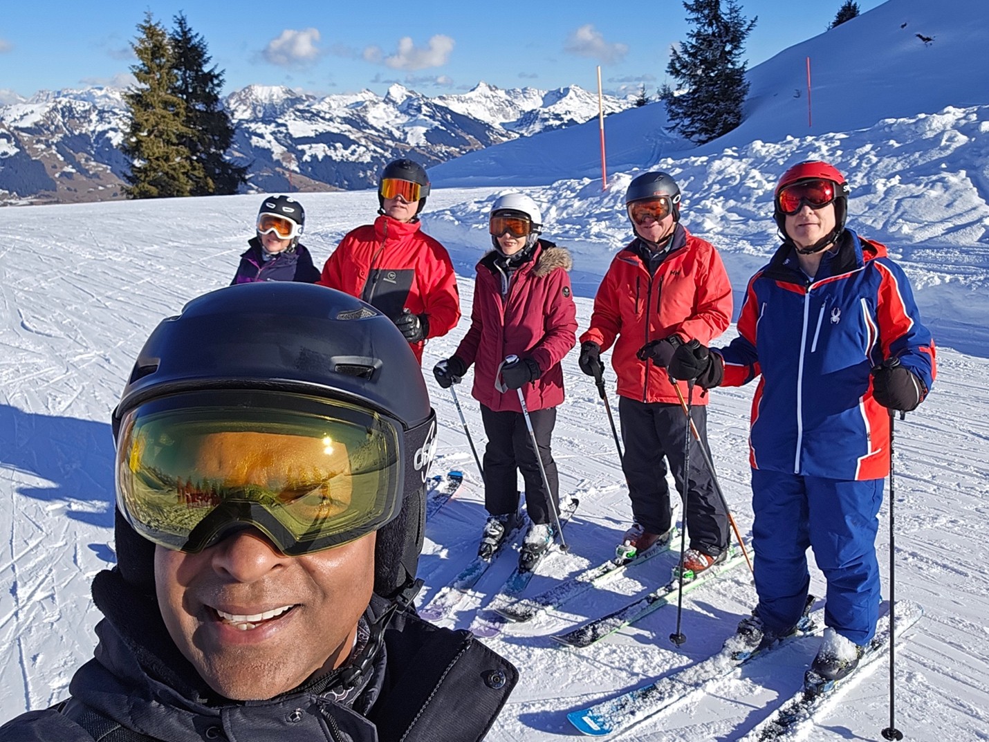 Feb 6-15, 2026 Travel OverviewHSC returned to Europe in 2026. Our club organized a trip for 47 members, with 30 participants flying together on United Airlines from Newark to Zurich, while the remaining 17 arranged their own airfare. Some arrived early to acclimatize, and others met the group at Zurich Airport. We had no delays on the overall travel which was pleasant. After everyone gathered, we took a bus to and from Kitzbuhel, which was a journey of almost five hours each way. Fortunately, the bus had a storage area for Ski’s and a bathroom. Accommodations in KitzbuhelWe stayed at the Maria Theresa Hotel, a four-star property located in downtown Kitzbuhel, not far from the main ski lift—Hahnenkammbahn Cable Car. Although the hotel was not ski-in/ski-out and required some walking, the availability of ski lockers, buses, and a bit of effort made the commute manageable. The hotel featured common amenities such as a gym, sauna, and steam room, but did not have a jacuzzi. The rooms were characteristic of European hotels: nice, clean, a little old, but comfortable. Skiing ExperienceKitzbuhel proved to be an excellent destination for skiing. While the snow conditions were not at their absolute best, there was still plenty of skiable terrain. The resort boasted impressive infrastructure, including heated chair lifts, gondolas, and numerous places to dine, relax, and enjoy the mountain. The ski area is expansive, spread across three mountains, offering a variety of runs and experiences, making it a place worth visiting again. The combination of the town, the ski area, and the infrastructure contributed to a fantastic overall ski experience. Although we aimed to avoid spring break, the last two days saw heavier crowds at the lifts, and we encountered a couple of slushy afternoons at lower elevations. Nevertheless, the mountain was large enough to accommodate everyone comfortably.