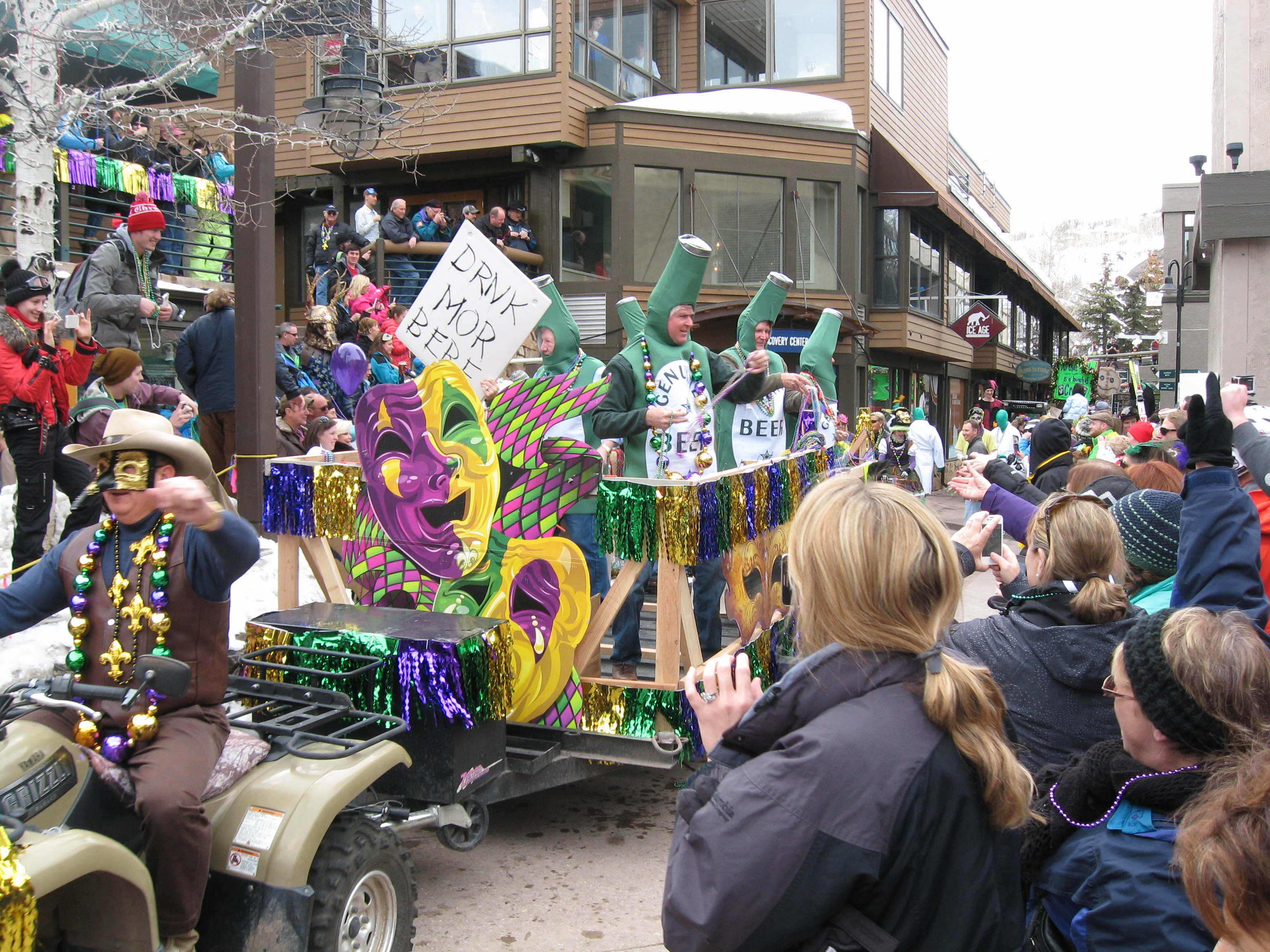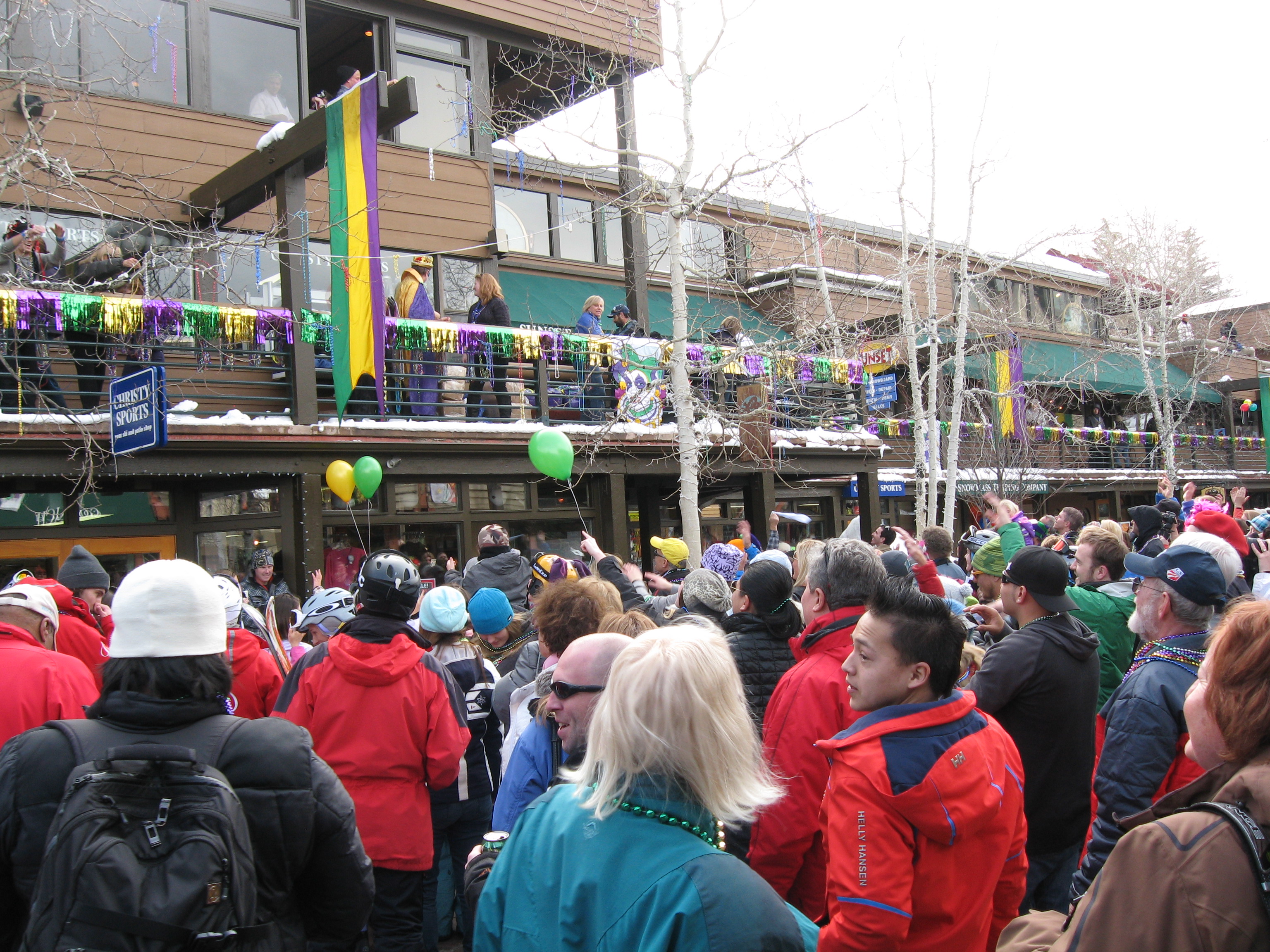 skiing, we celebrated Mardi Gras. There was a parade and beads tossed