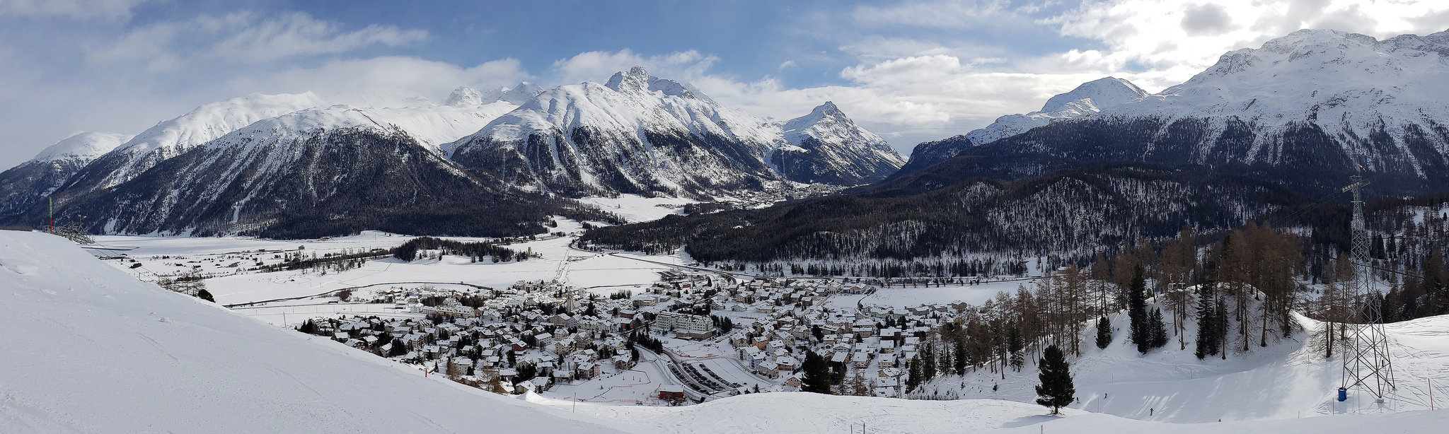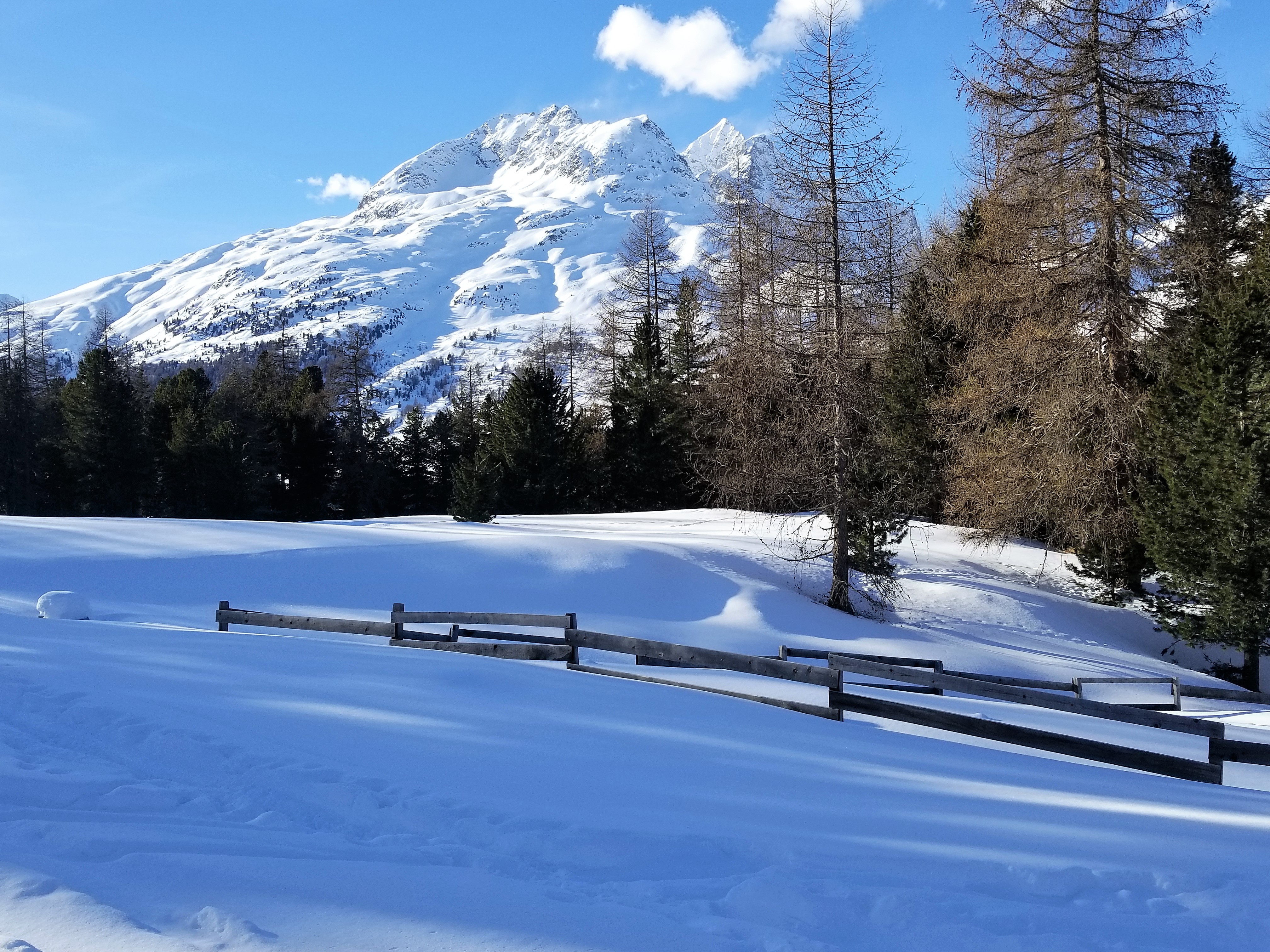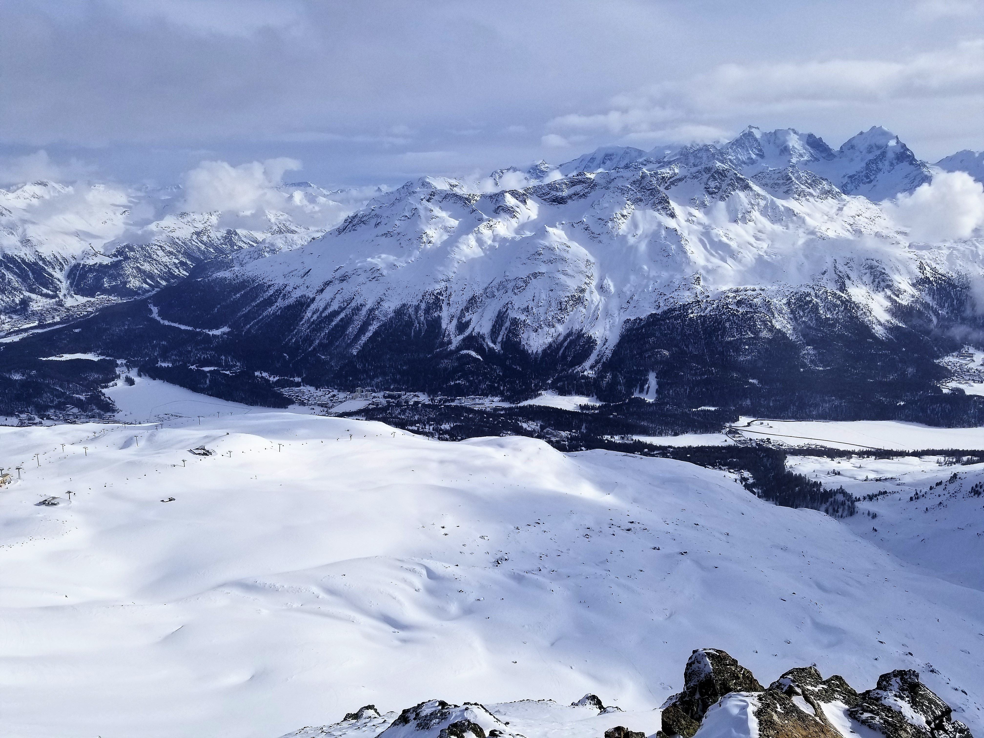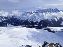 everyone engaged and happy. CLUB MED PHOTOS Monday morning began the 5-days of instructor led lessons. Each skier level had a different meeting time and destination, which changed each day, as posted on the lesson board by the front desk. Of the 3 different ski areas, 2 required bus transportation, and one required a 600m walk. Several of the skier level groups consisted of all or mostly Holmdel Ski Club members. It was important to align with a particular social group on the first day since this was your group for the entire week. Some instructors in a given group level gave frequent lesson tips/assessments, while others mostly guided us around the mountains. Once again, it was important to initially align with your preference of an instructor or a guide. CLUB MEMBERS ON THE SLOPES Skiing in St Moritz is primarily on firm, narrow, groomed runs. Most of the off-piste areas were rocky and covered in hard windslap snow. There were no on-piste moguls, since every run is groomed every day, even after a large dump of snow. The locals all had stiff carving or racing skis. The allure of St Moritz skiing is the various views of the Alps. MOUNTAIN PHOTOS