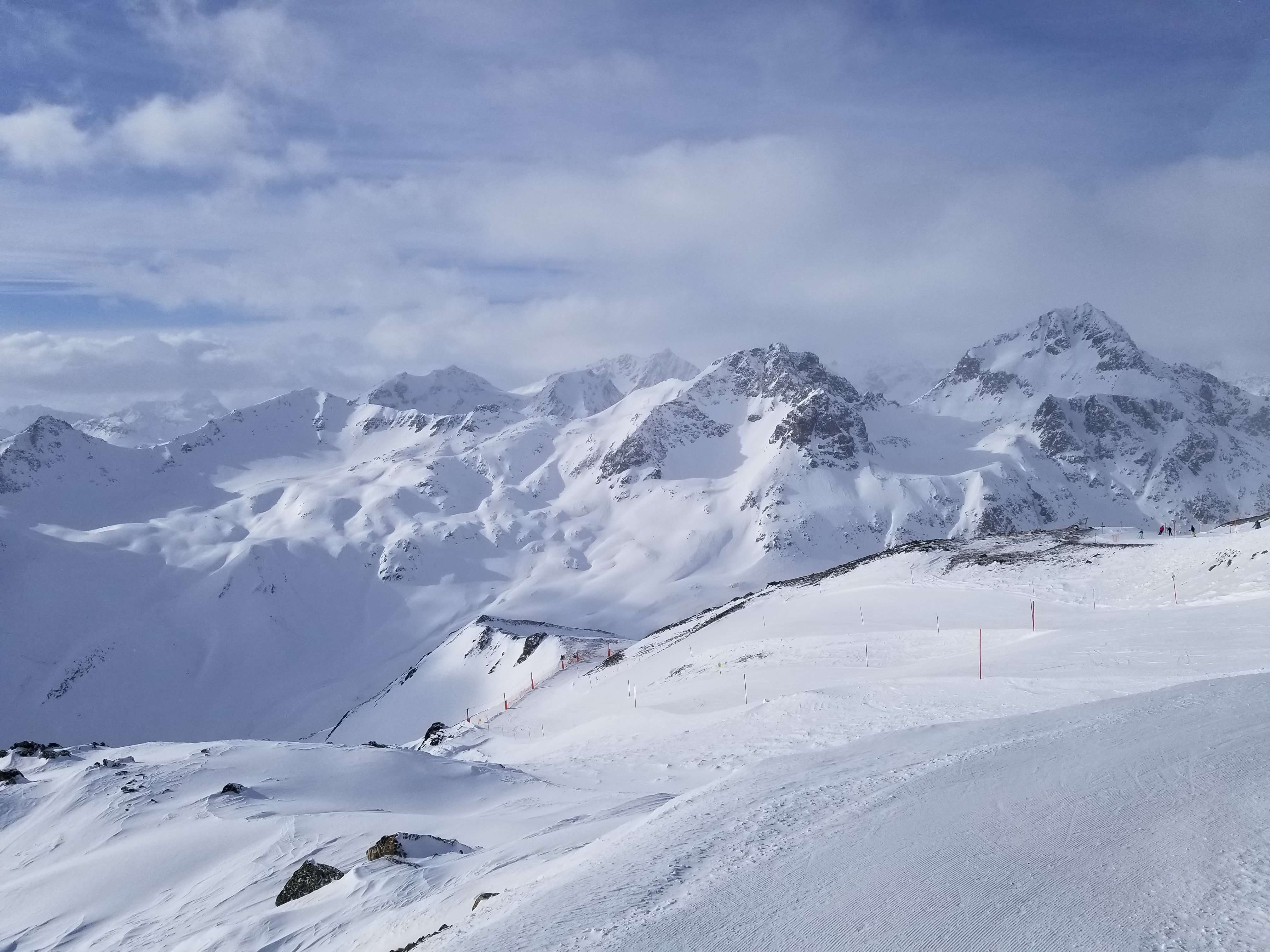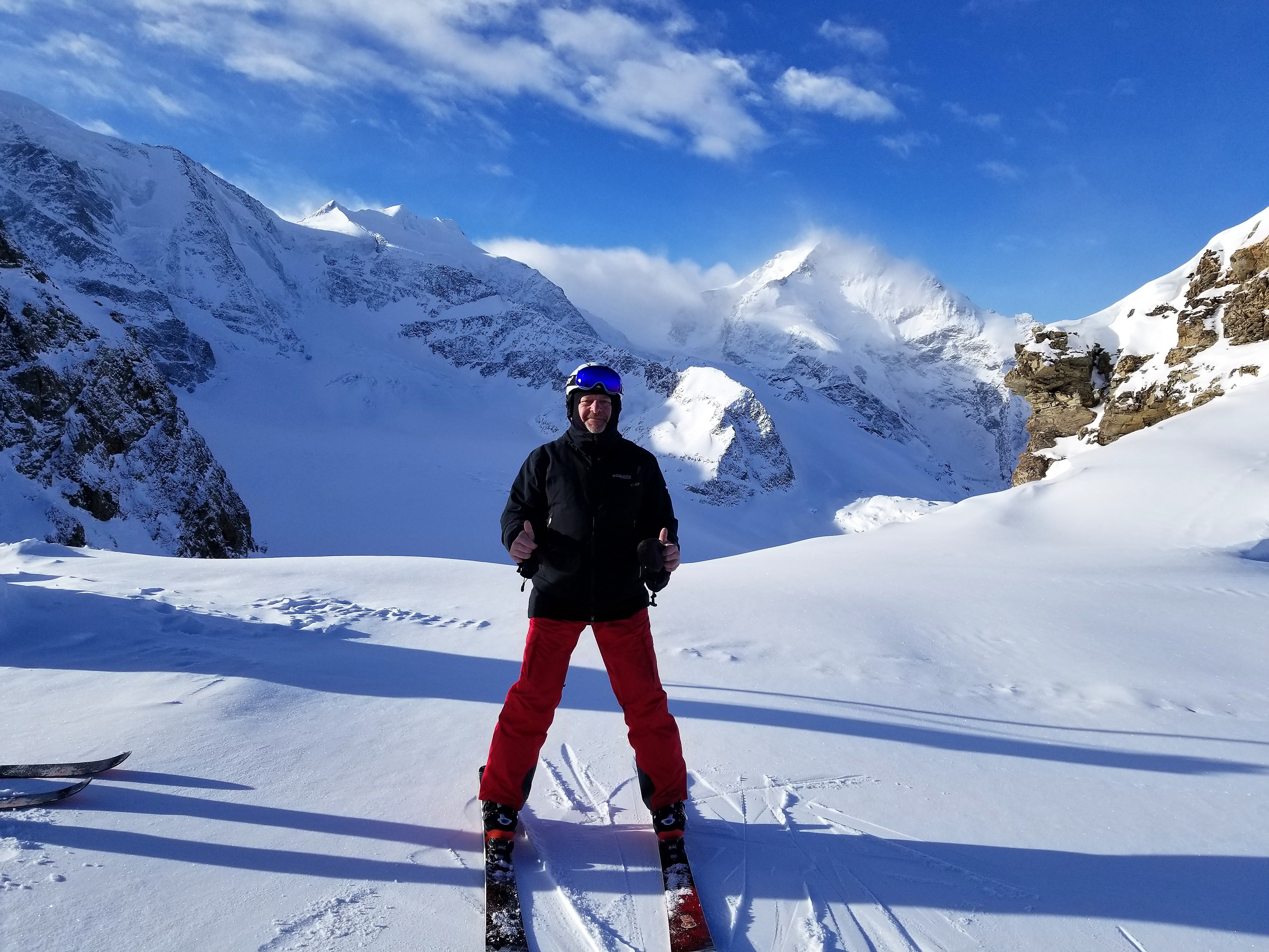 Tuesday through Friday were similar to Monday, but at a different ski areas. When we skied at the Diavolezza/Lagalb ski area, we were taken back to Club Med around 1pm so that we could eat lunch at the hotel. Diavolezza and Lagalb had the most spectacular scenery, but very few runs, so the 1pm departure was appropriate.