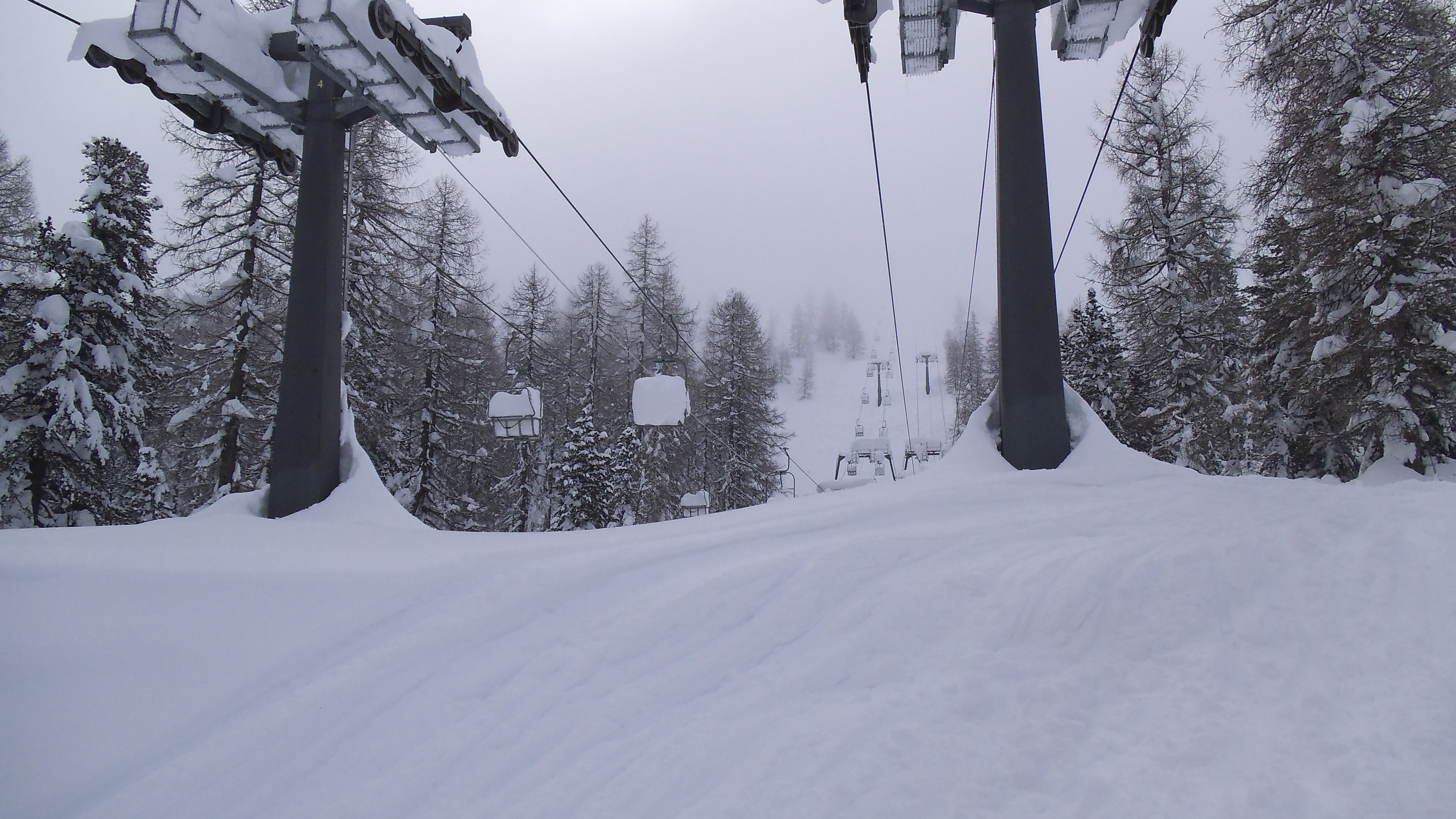 rain had turned to snow by the time we reached Cortina. And snow it was,